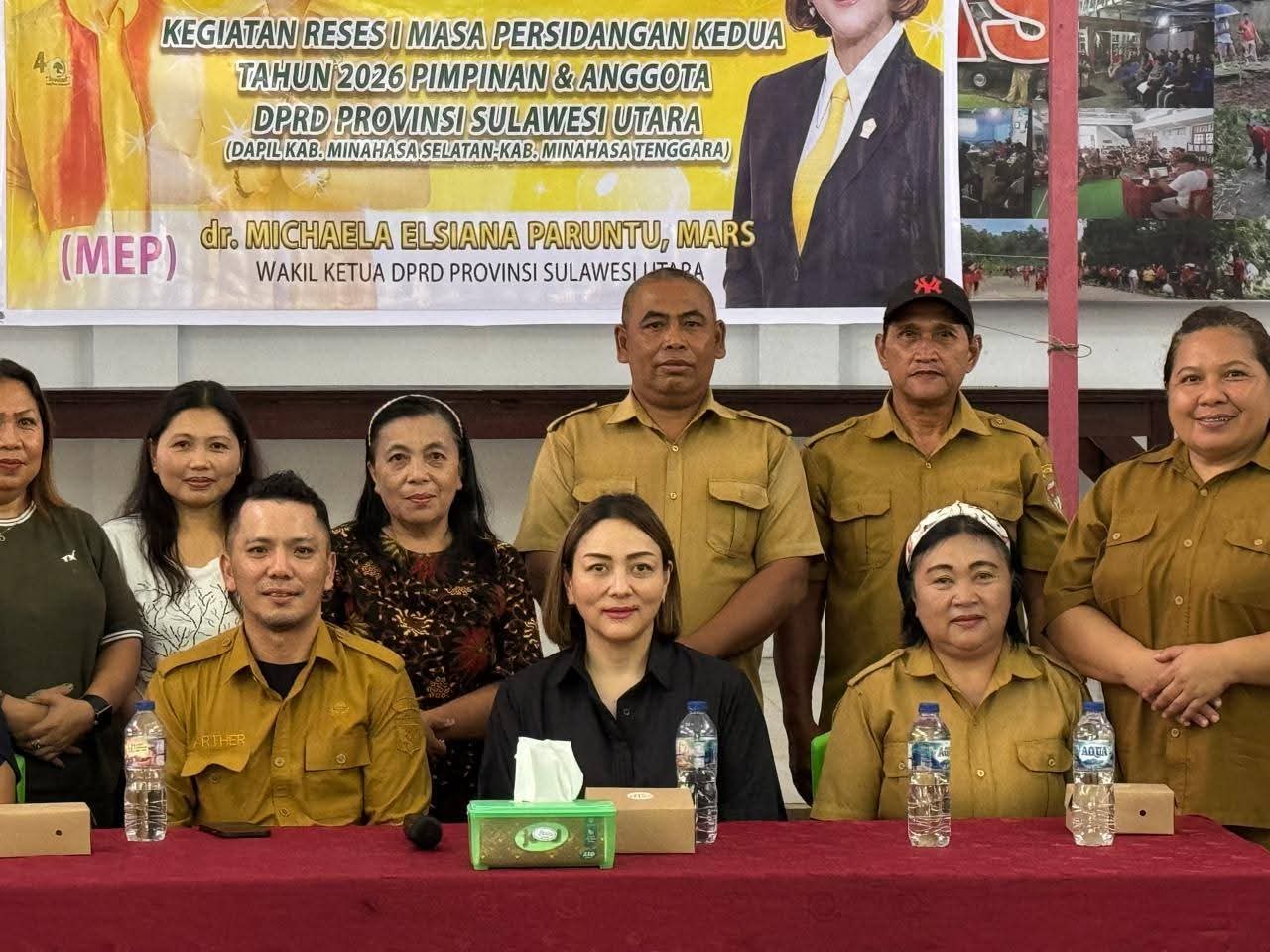 NPM, Amurang — Wakil Ketua DPRD Provinsi Sulawesi Utara dr. Michaela Elsiana Paruntu MARS, melaksanakan kegiatan Reses Masa Persidangan Kedua Tahun 2026 di Desa Rumoong Atas, Kecamatan Tareran, Kabupaten Minahasa Selatan, Senin (30/3/2026).