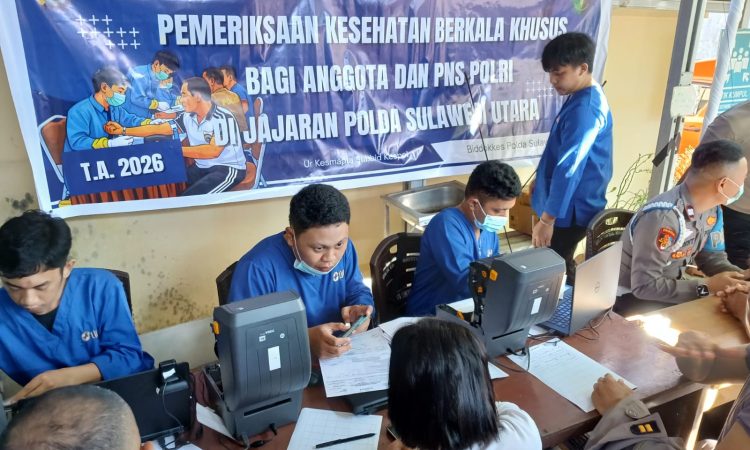 NPM, MANADO – Polresta Manado menggelar kegiatan pemeriksaan kesehatan berkala bagi anggota Polri dan Pegawai Negeri Sipil (PNS) Polri jajaran Polda Sulawesi Utara, Kamis (02/4/2026).