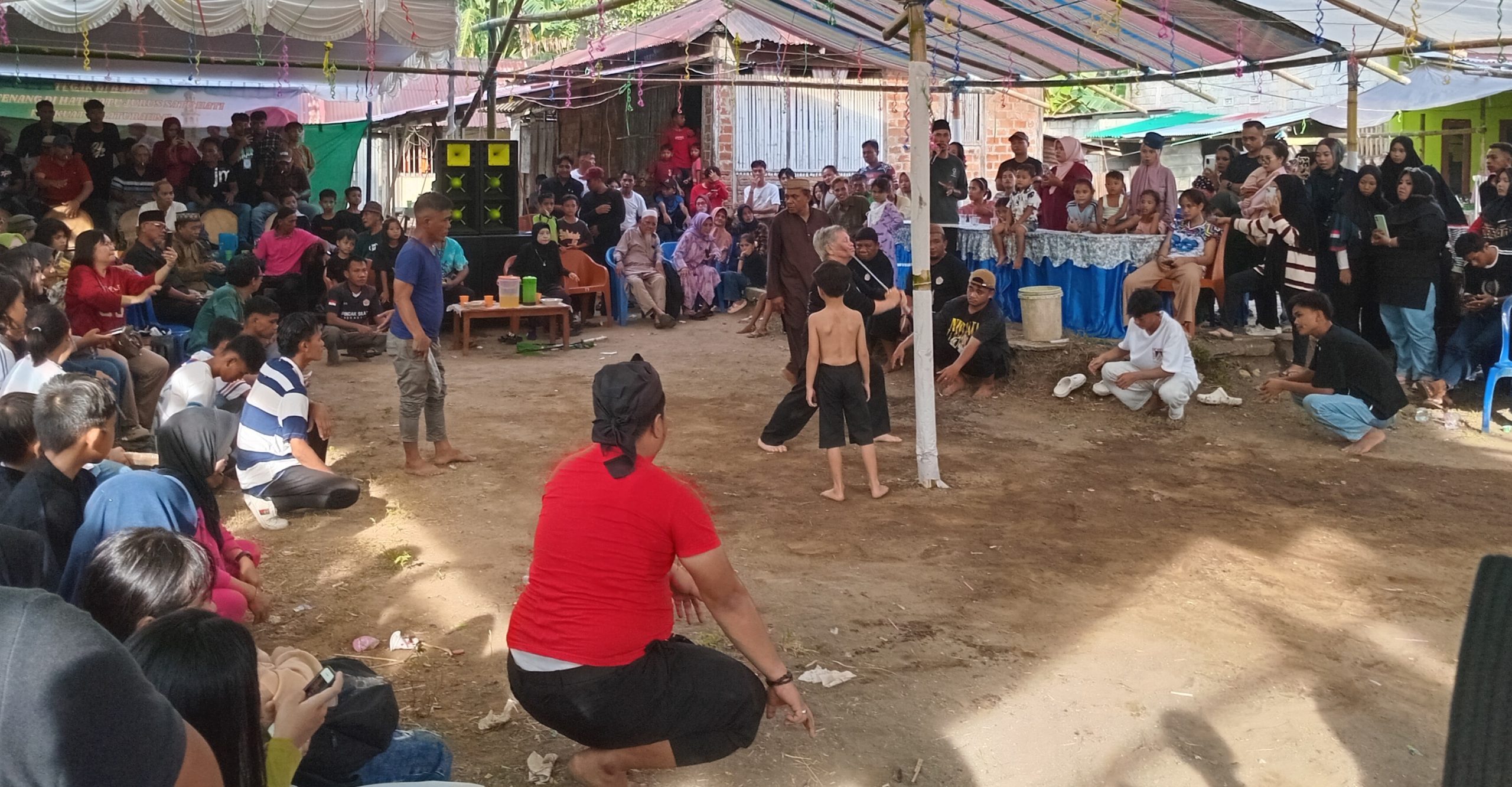 Tampak warga antusias menyaksikan beragam atraksi silat yang disiapkan panitia.