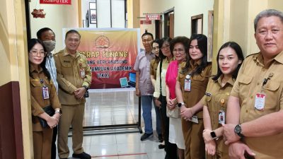 Sekira pukul 10.00 Wita diapit Kepala Dinas Pendidikan Ir Jofieta Supit Msi dan Kepala Dinas Kominfo Asriyadi Lalompoh Msi tiba dilokasi SD Advent Unklab.