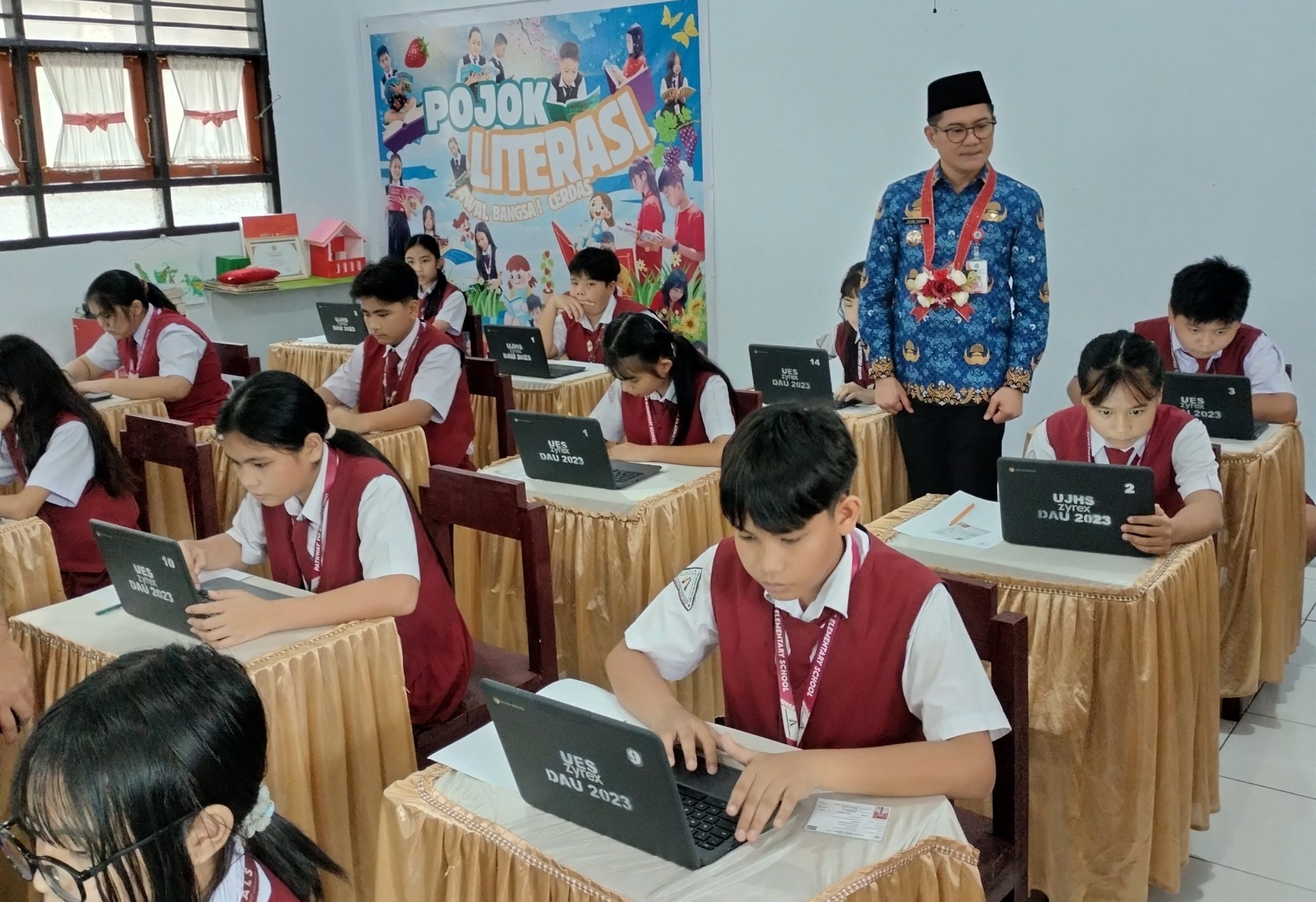 Usai pembukaan Token, Bupatipun memantau ke semua ruangan untuk melihat proses ujian Test Kemampuan Akademik.