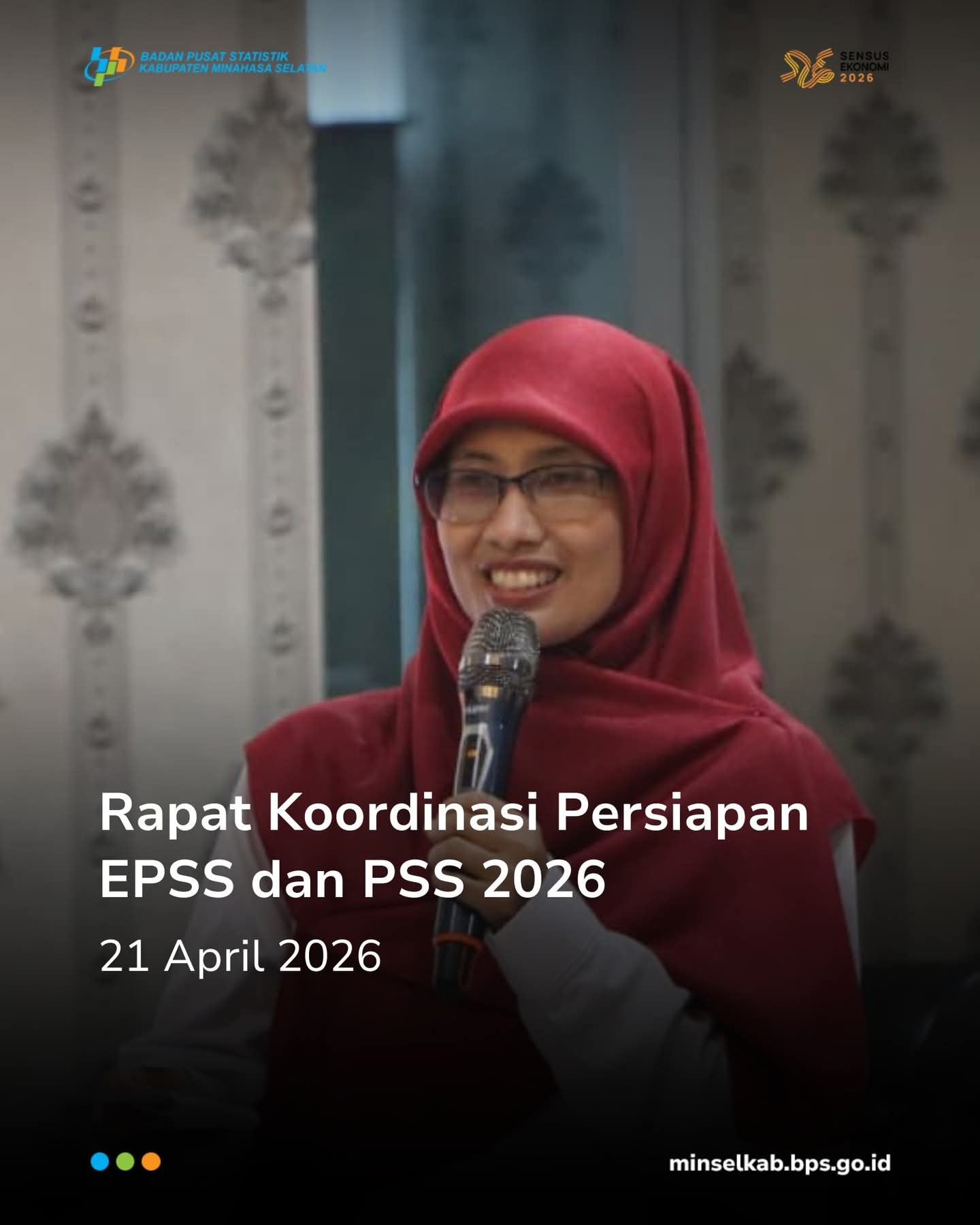 NPM, Amurang – Badan Pusat Statistik (BPS) Kabupaten Minahasa Selatan menggelar Rapat Koordinasi persiapan pelaksanaan Evaluasi Penyelenggaraan Statistik Sektoral (EPSS) dan Penyelenggaraan Statistik Sektoral (PSS) Tahun 2026 di Kantor Pemerintah Kabupaten Minahasa Selatan, Selasa, (21/4/2026).
