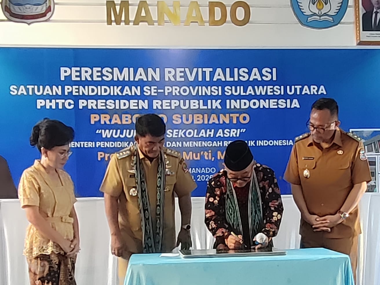 NPM, Manado – Menteri Pendidikan Dasar dan Menengah (Mendikdasmen) Prof Dr Abdul Mu’ti, M.Ed meresmikan Revitalisasi Bantuan Pendidikan se-Provinsi Sulut PHTC Presiden RI Prabowo Subianto.