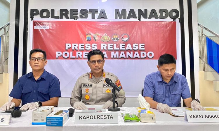 NPM, MANADO – Polresta Manado menggelar press release terkait pengungkapan kasus peredaran narkotika golongan I jenis sabu.