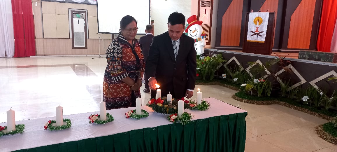 Pesan Natal disampaikan Pdt. Heri Mamahit, S.th yang mengambil bacaan Alkitab Filipi 2:1-11.
