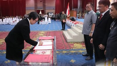 NPM, Manado – Walikota Manado Andrei Angouw diapit wakil Walikota dr Richard Sualang melantik sejumlah…